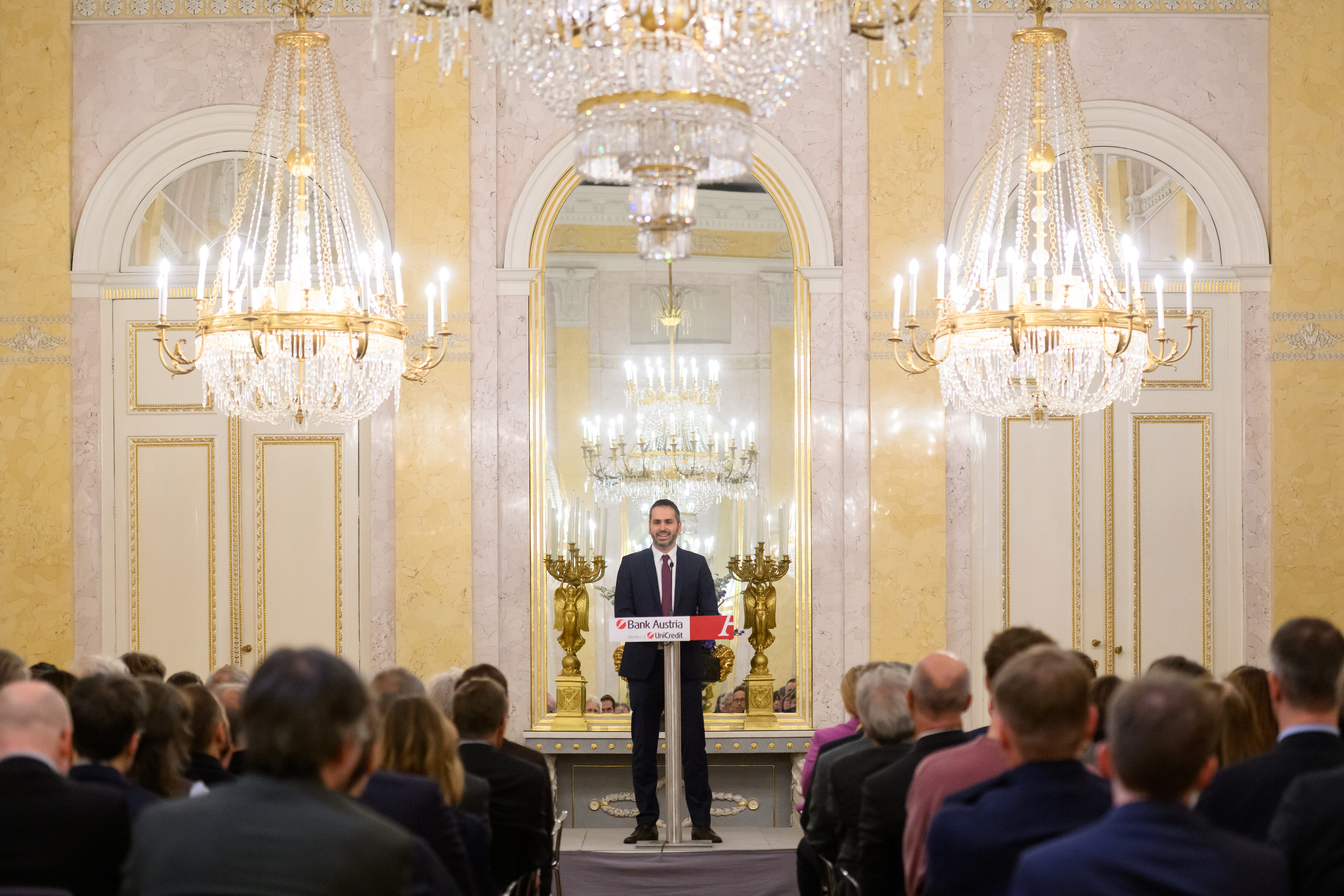 v.l.n.r.: Martin Kocher, Gouverneur der Oesterreichischen Nationalbank, Jakob Zirm, Leiter des Wirtschaftsressorts der Tageszeitung „Die Presse“, Marion Morales Albiñana-Rosner, Vorständin für Private Banking & Wealth Management der UniCredit Bank Austria