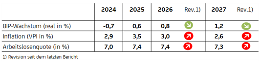 Die moderate Erholung der österreichischen Wirtschaft scheint sich in den ersten Monaten 2026 fortzusetzen. Allerdings zeigen die Stimmungsindikatoren mit dem Beginn des Iran-Kriegs und den in der Folge stark gestiegenen Energiepreisen im März spürbar nach unten. Aufgrund des Iran-Konflikts haben wir unsere Wachstumsprognose für die österreichische Wirtschaft mittlerweile zurückgenommen. - Arbeitslosenquote unverändert bei 7,5 Prozent